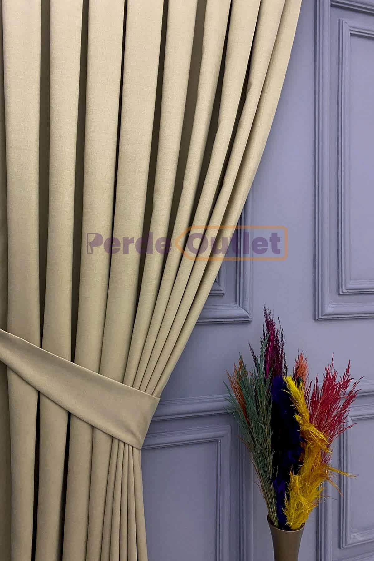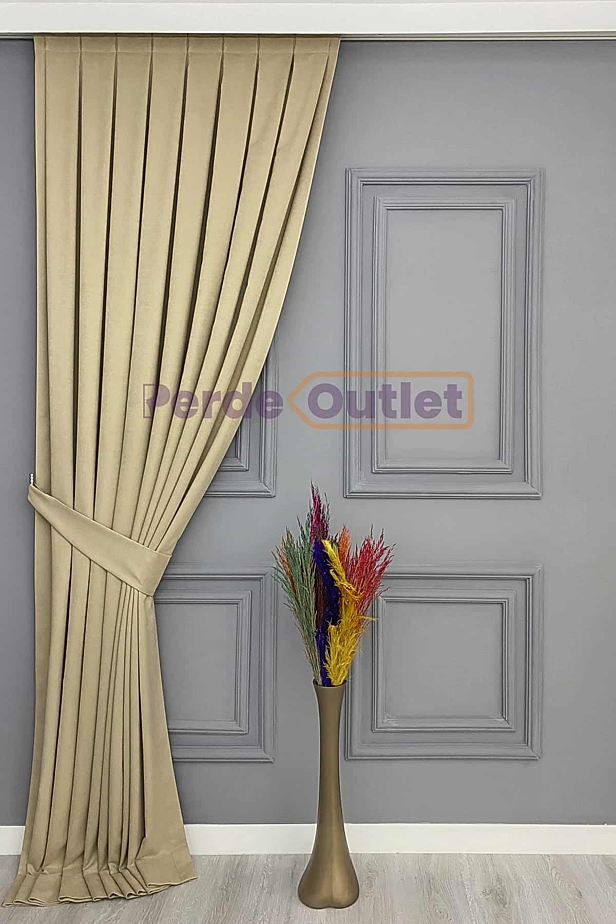 Hazır Bej Rengi Düz Fon Perde